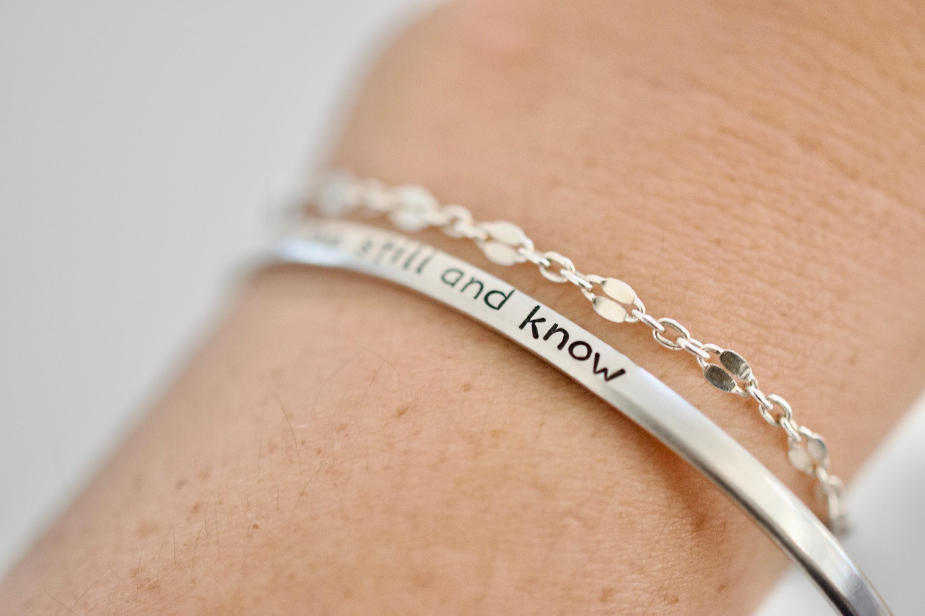 Be Still and Know Bracelet – Hand Stamped Cuff – Inspirational Quote Jewelry