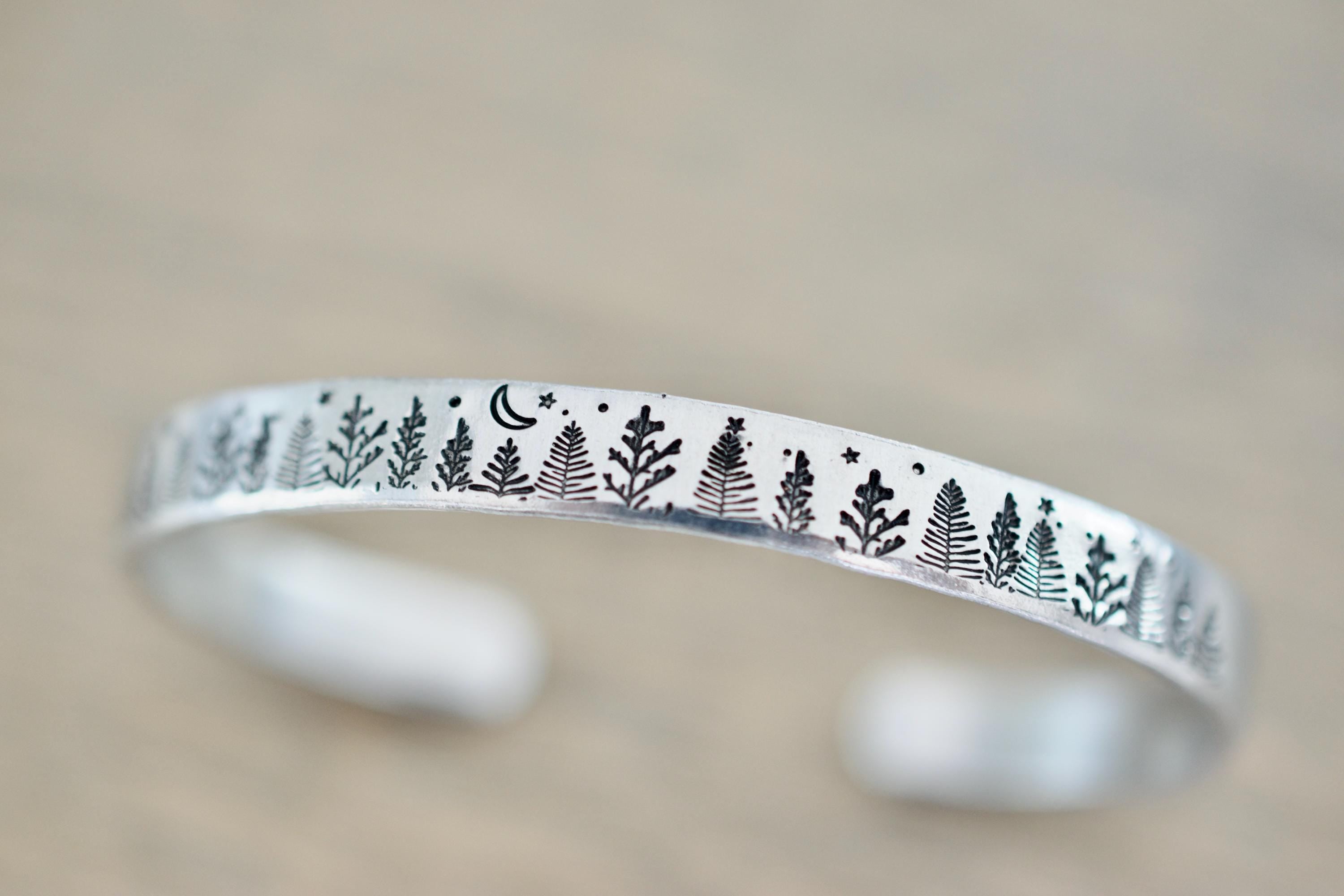 Forest Cuff Bracelet - Hand Stamped Nature Jewelry - 1/4" Adjustable Metal Cuff