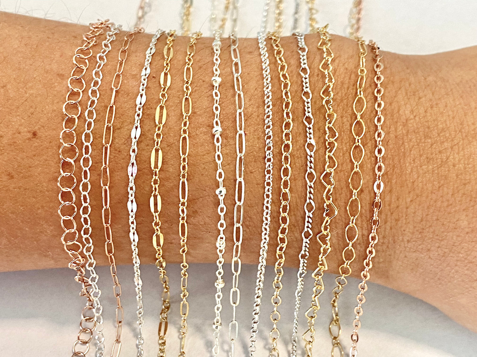 Choose Your Jewelry: Select from our range of styles including sterling silver, 14kt gold fill, and 14kt rose gold fill. You can customize your look with charms, clasps, and additional pieces.